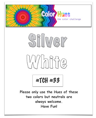 The Color Hues Challenge // #TCH32 ...A color challenge!! A duo of colors to inspire us. Silver & White are the two colors given for this challenge. I used both silver embossing powder (for the flowers layered on the die) and silver metallic card stock. This metallic paper that I have is so awful to photograph...very reflective and when photographed it looks more like a black. Much prettier in person!
