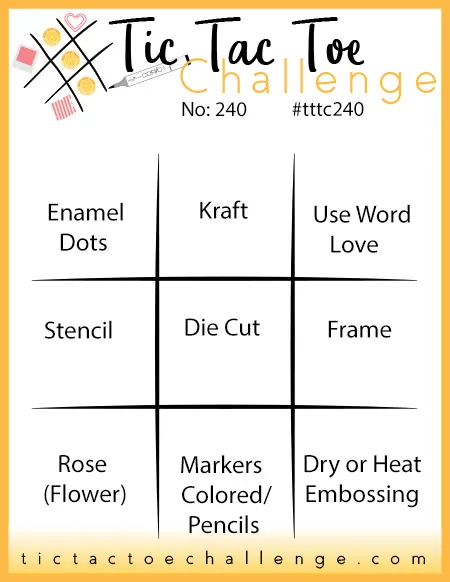 TicTacToe Challenges // #tttc240 ...A game board challenge!! My winning three in a row: rose, die cut, & use the word LOVE!!