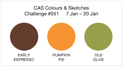 CAS Colours & Sketches // #551 ...A color & sketch challenge!! This week they are offering a color challenge. The colors called for in this current challenge are Early Espresso, Pumpkin Pie, and Old Olive. I usually think of these colors as fall colors but they worked great for a caffeinated themed card too.